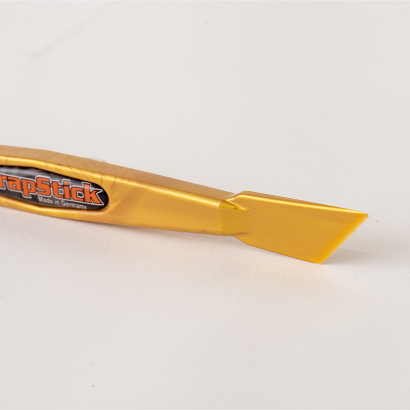 鋭角のメスの形状をしておりボディの曲線に沿ってラバーを持ち上げる作業に適しています。丸い端部についても持ち上げ作業、貼り作業のどちらにも使える万能ツールです。本体にマグネットが内蔵されてるので他のものに持ち替える時はカーボディに付けることができるので便利です。