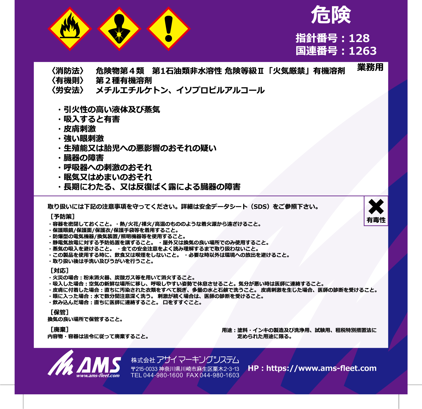 | 注意事項 | ※イエローツールズ製品ではございません。 ※ご注意:キャンセル・返品・交換は不可の商品となります。 供給元:株式会社アサイマーキングシステム ※下記のファイルダウンロードから、SDSをご確認の上、ご使用くださいますようお願いいたします。 |