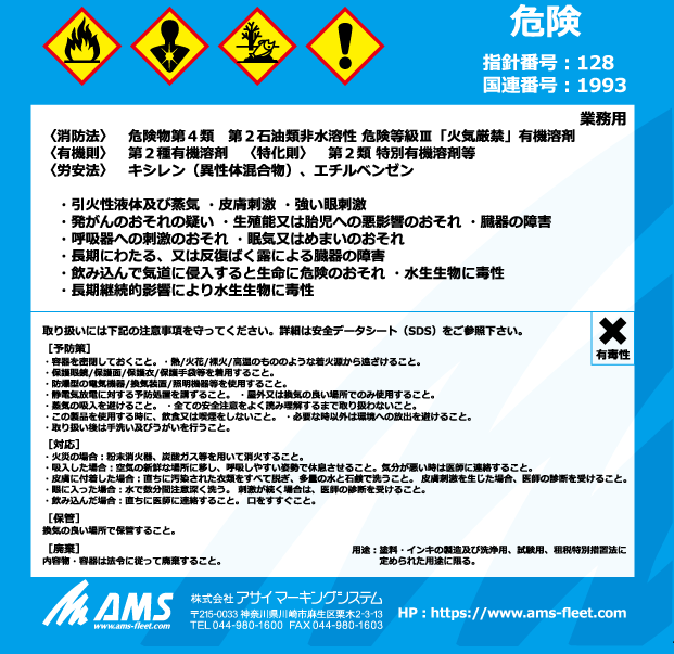 注意事項 | ※イエローツールズ製品ではございません。 ※ご注意:キャンセル・返品・交換は不可の商品となります。 供給元:株式会社アサイマーキングシステム ※下記のファイルダウンロードから、SDSをご確認の上、ご使用くださいますようお願いいたします。 |