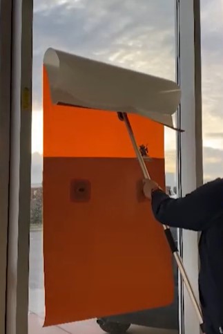 ハンドルの先にお手持ちのティンバーマックスを取り付けることで、床や壁、天井の貼り施工に使用可能。
